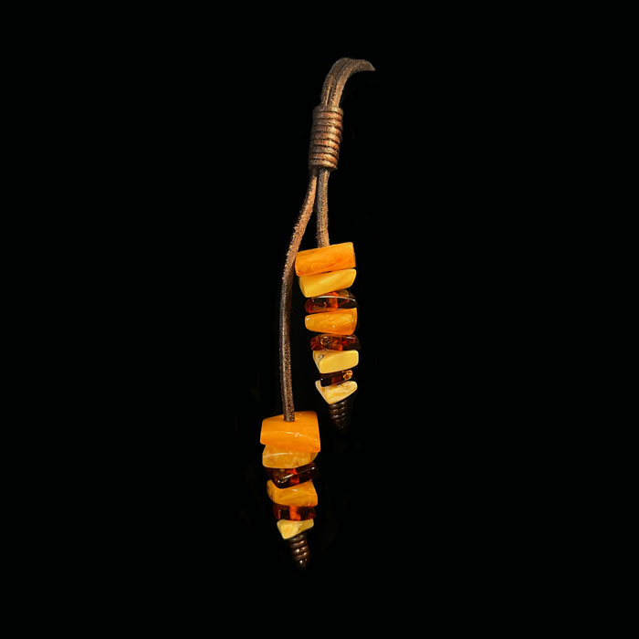 Armband mit ovalen Beads aus opakem Bernstein in gelboranger Farbe, mit schöner Musterung. Die Beads haben einen Durchmesser von ca. 11 mm und sind auf einem stabilen Gummiband aufgezogen.