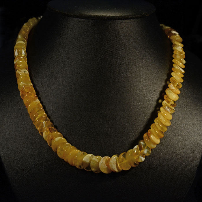Babykette aus einfarbigen, polierten Bernstein-Splittern mit Drehverschluss. 30 cm.