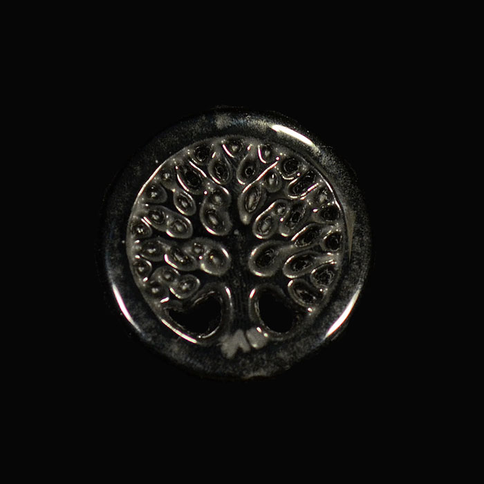 Ein handwerklich höchst beachtliches Stück: flacher Obsidian, leicht durchscheinend, in dem ein Kolibri und diverse Hibiskus-blüten eingraviert sind - ausgewogen und detailfreudig.