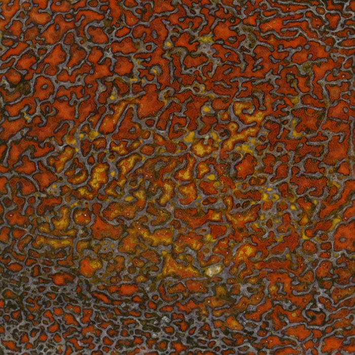Ein Querschnitt durch einen Sauropodenknochen, dessen Knochenstruktur durch wunderschönen roten und gelben Achat ersetzt wurde. Die Musterung ist perfekt zu sehen und erhalten.