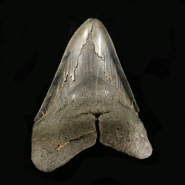 Fossiler Haizahn (Carcharocles sokolowi), 8.5x5.5 cm (Neuheit)
