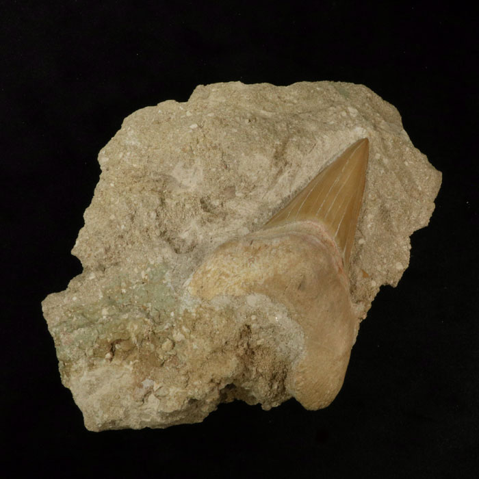 Schön erhaltene Haizähne des Megalodon, ca. 6-7x5-6 cm breit.