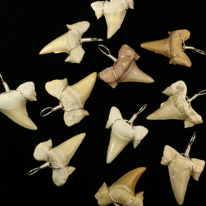 Haizahn, fossil, mit Drahtöse, 3 cm