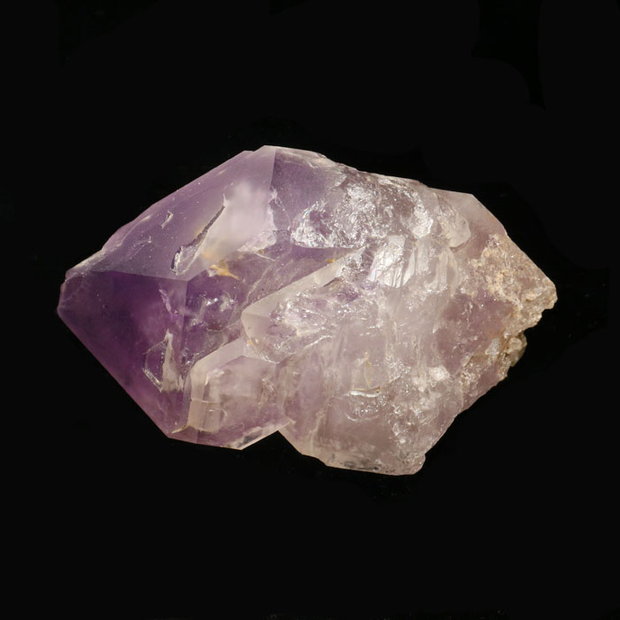 Interessante, mehrschichtige Spitze aus Amethyst in guter Farbe, teilweise ausgeprägtem Fenster- bis Zepterwuchs und mit seidigem Glanz.