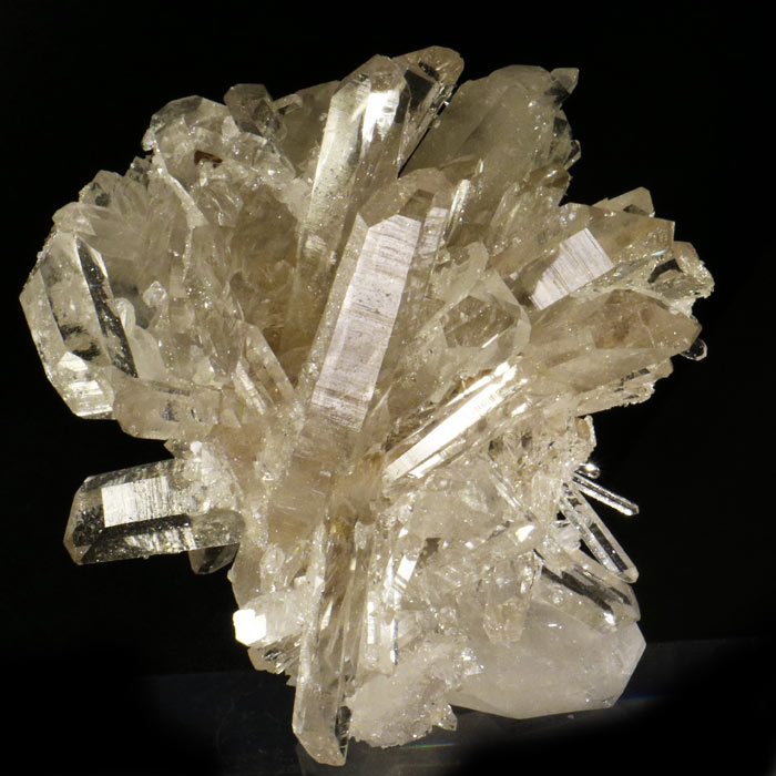 Kleine, schmucke Rauchquarz-Gruppe von sehr heller Farbe (also fast Bergkristall), mit klaren, glänzenden, intakten Spitzen.