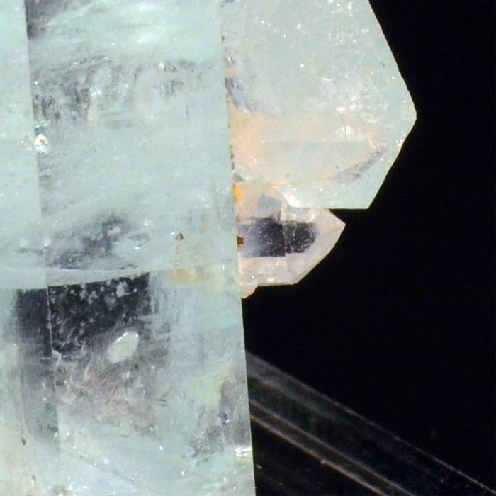 Mit einem kleinen Aquamarin-Seitenkristall und einem hübschen kleinen Bergkristall.