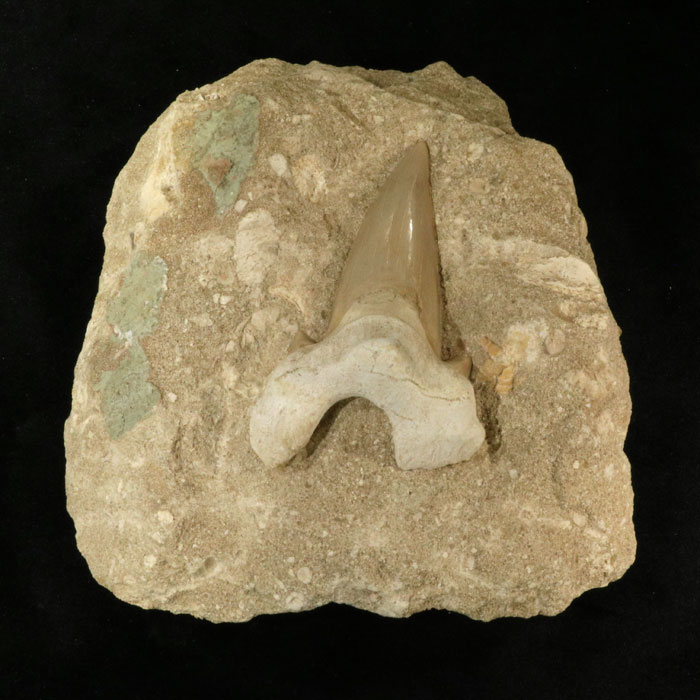 Fossiler Haizahn (Carcharocles sokolowi), 8.5x5.5 cm (Neuheit)