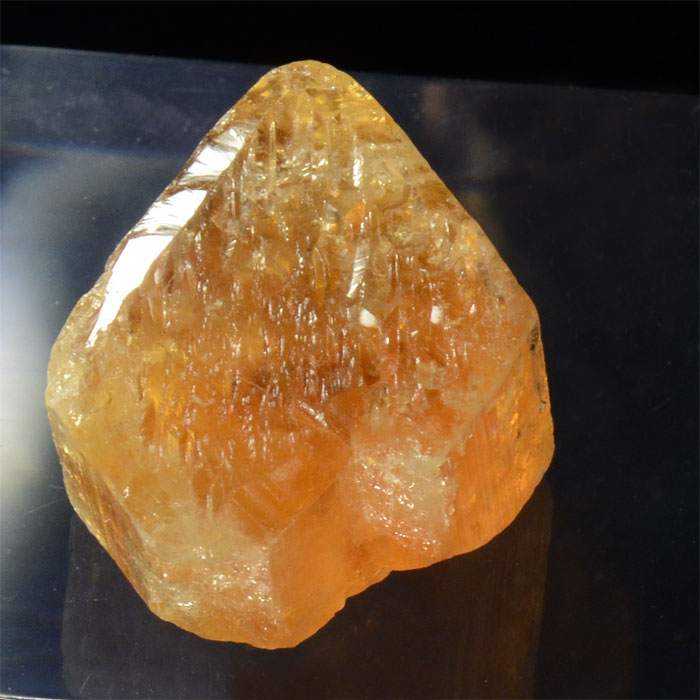 Faszinierendes Kopfstück eines Goldtopas-Kristalls von stattlicher Grösse: Sein Querschnitt ist 2.6x3.2 cm gross, er ist bis 1.7 cm hoch.
