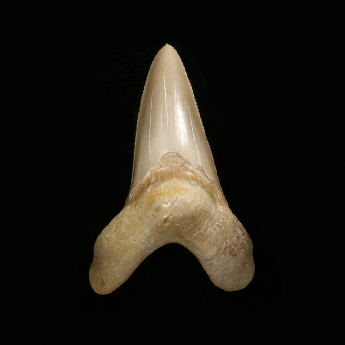 Fossiler Haizahn (Carcharocles sokolowi), 8x6 cm (Neuheit)