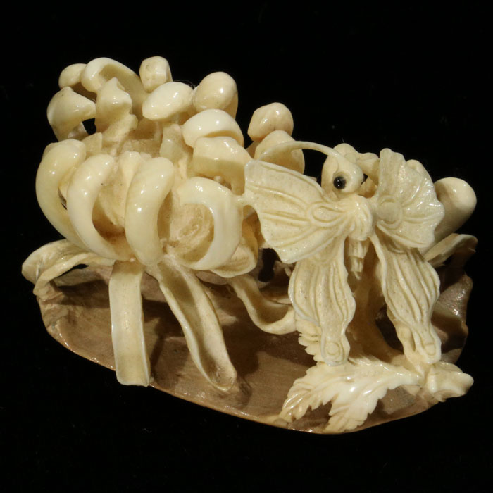 Mammut-Schnitzerei "Frösche und Bambusblüten", 5.8x3.5 cm (Neuheit)