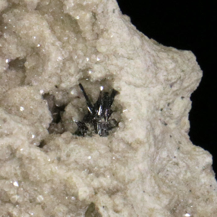 Kleiner Pargasit-Kristall, welcher komplett mit Lava überzogen ist.