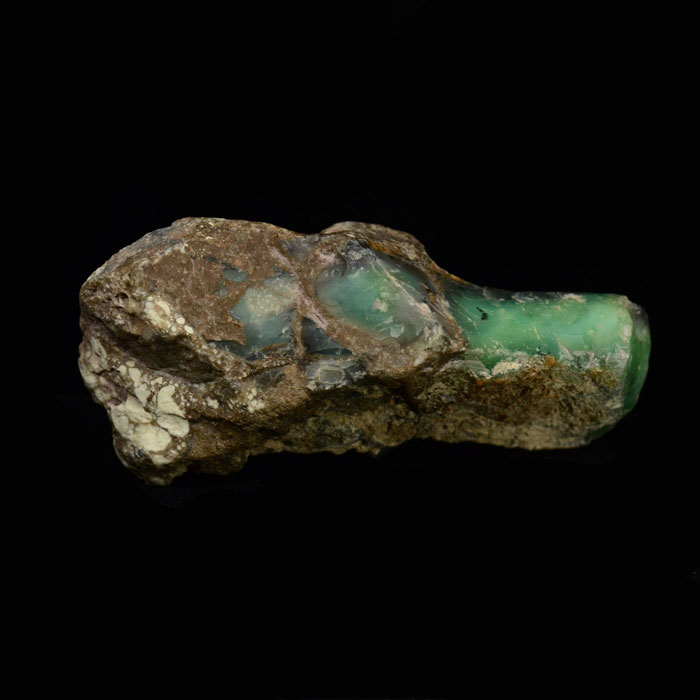 Schönes Rohstück Chrysopras, welches auf der Vorderseite glänzend poliert ist.