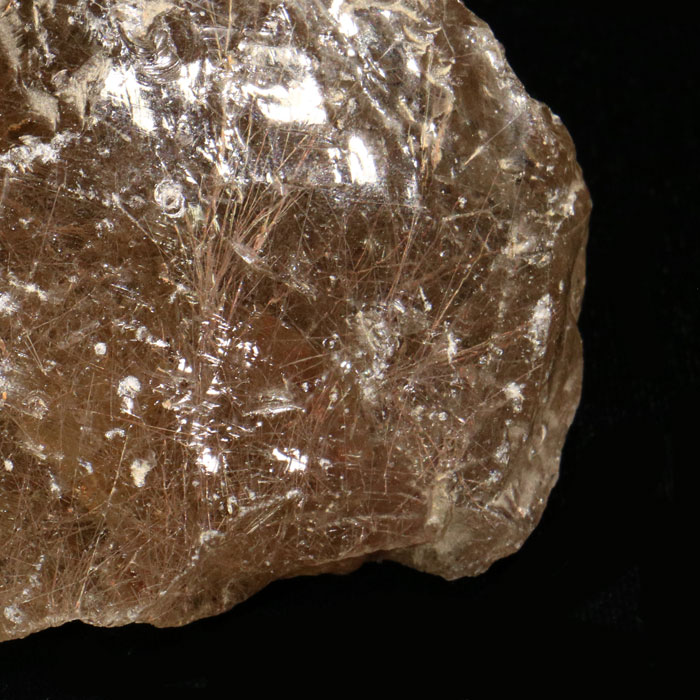 Spannendes Rutilquarz-Rohstück mit feinen Rutilnadeln in grauer, leicht rötlicher Farbe.