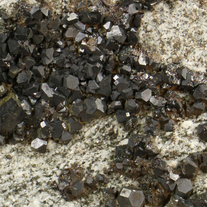 Ein bedeutendes, reichhaltiges Stück einer grossen mineralogischen Rarität: unzählige, sehr gut ausgebildete Cafarsit-Kristalle, mit gutem Glanz, auf heller Gneissmatrix.