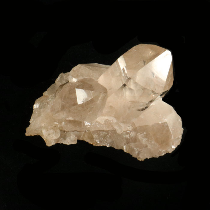 Attraktive Gruppe von Spitzen aus hellem Rauchquarz. Besonders die dominante Spitze ist extrem klar und weist schönen Glanz auf. Das Stück ist ca. 8.5 cm lang, 5 cm breit und 5.5 cm hoch.