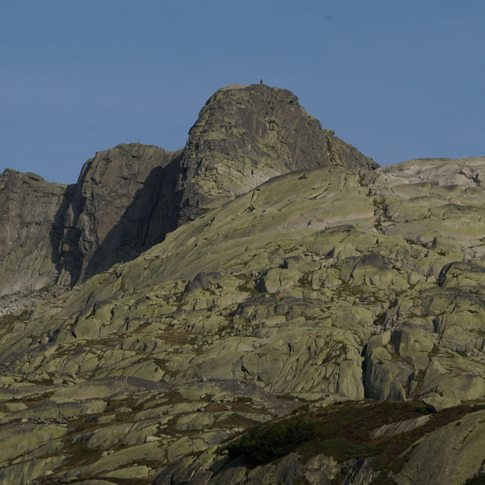 Ein Morion, wie er im Buche steht: Fast pechschwarz und hochglänzend! Rundum kristallisierte Spitze, 9.5 cm hoch, von einem Fund des Strahlers Robert Hauser.