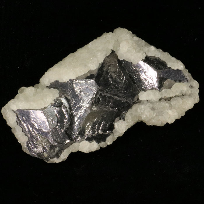 Bleiglanz (3 Kristalle) in Calcit, 7.2x4 cm