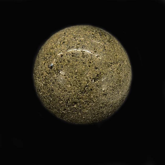 Hübsche, handliche Kugel aus Lapislazuli mit wunderschöner, wirbelartiger Musterung dank weissen Calcit, und goldig glänzenden Pyrit Einschlüssen.