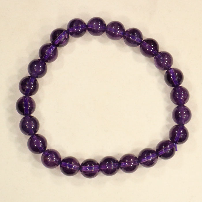 Armband aus schönem Amethyst in leuchtendem Violett, auf stabilem Gummiband aufgezogen.