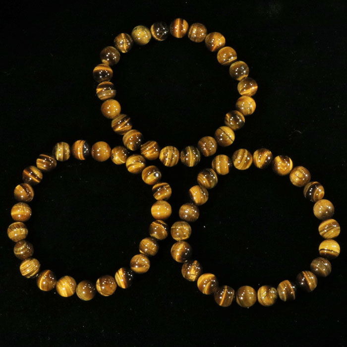 Hochglänzende schwarze Obsidianperlen, aufgezogen auf stabilem Elastik.