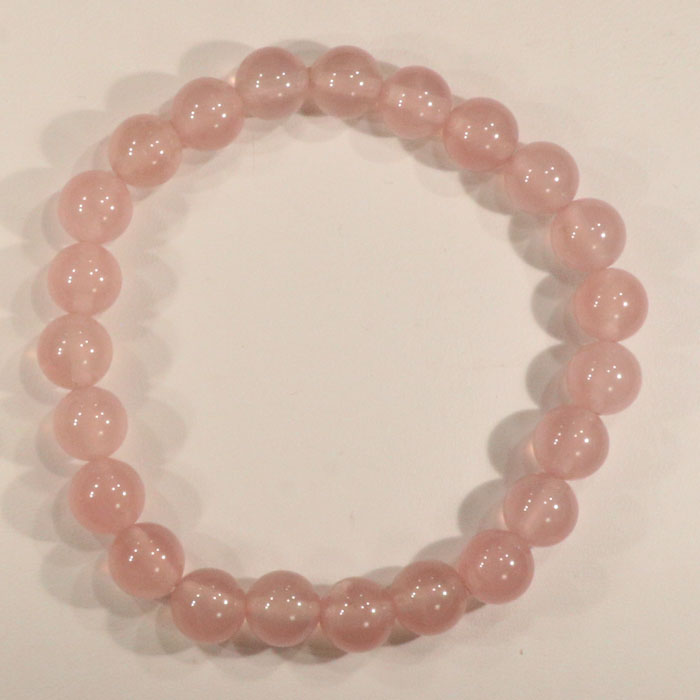 Rosenquarz von sehr guter Qualität (intensive Farbe), als Armband mit Kugeln von 8 mm Durchmesser.