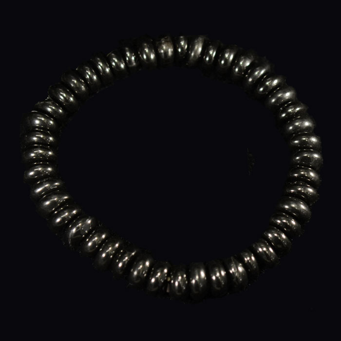 Hübsches Armband mit Kugeln aus Sodalith in sehr dunklem Blau, welches schon fast schwarz erscheint. Die Kugeln haben einen Durchmesser von ca. 8 mm und sind auf einem stabilen Gummiband aufgezogen.