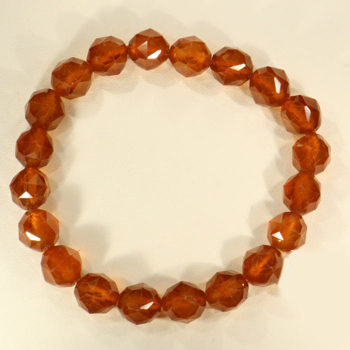 Ebenso auf dunkel wie auf hell sehr wirkungsvolles Armband aus facettierten Hessonit-Kugeln. Intensiver Glanz, typisch orange-zimtbraune Farbe.