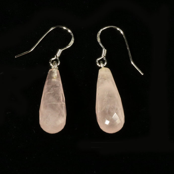 Rosenquarz-Ohrhänger, facettierte Brioletts