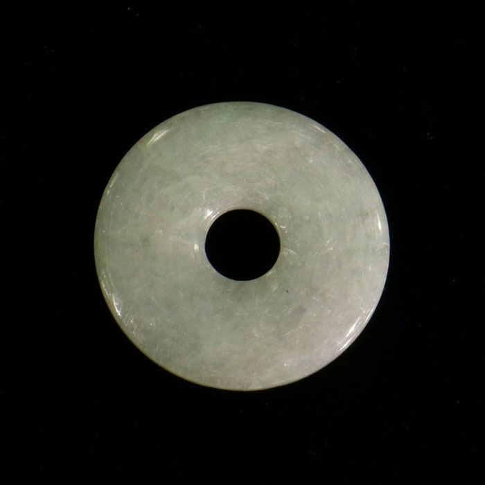 Pi-Scheibe von 30 mm Durchmesser aus Obsidian mit silbrigem Schiller. Dieser wird heute meist Silber-Obsidian genannt.