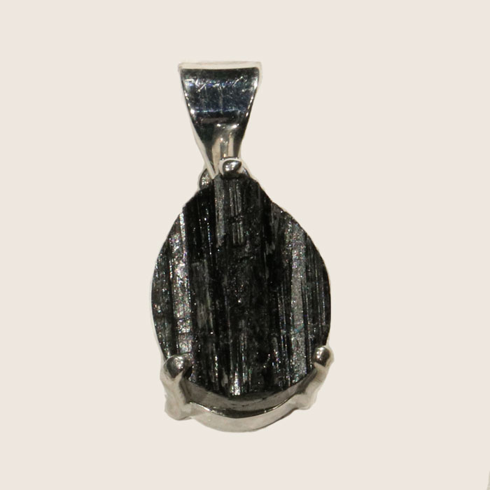 Grosser, tropfenförmiger Anhänger aus Rutilquarz mit goldigen Rutilnadeln, gefasst in 925er Silber.