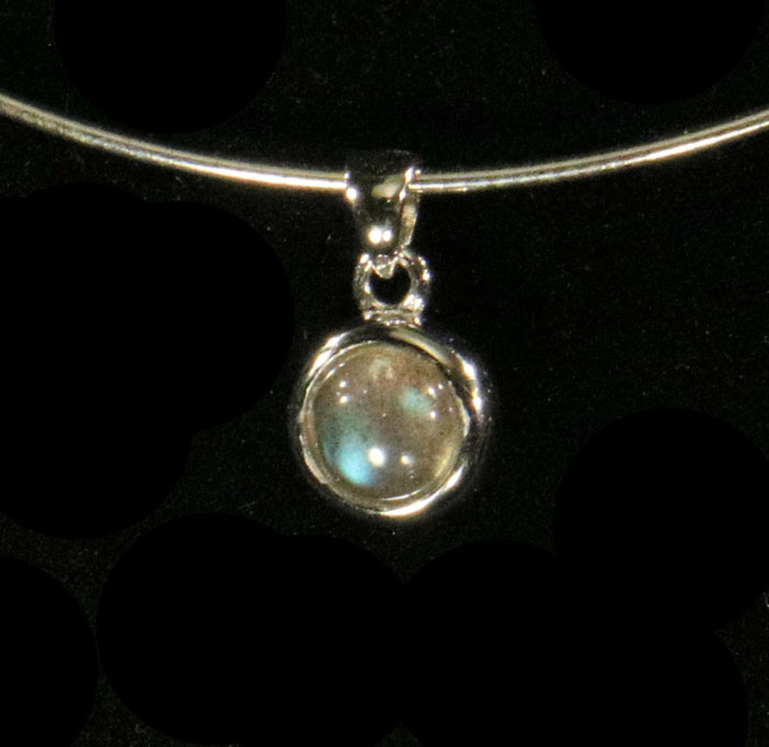 Zwei in eins: lässiger Anhänger der auf beiden Seiten einen Cabochon zeigt; schimmernder Labradorit und leuchtender Sonnenstein.