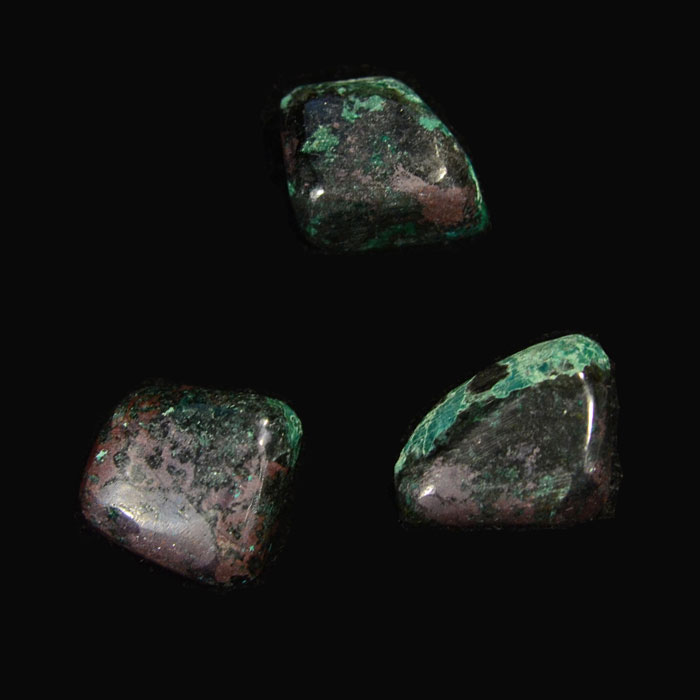 Cuprit mit Chrysokoll, Trommelstein