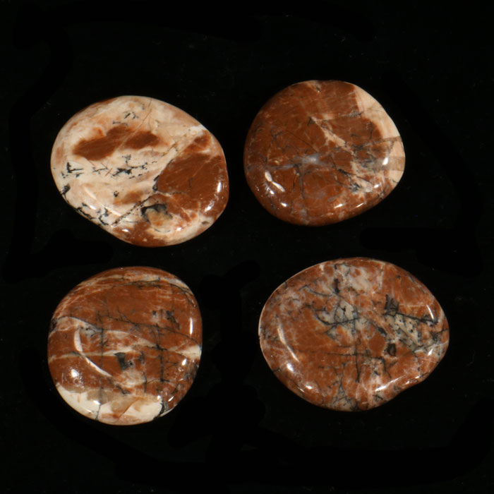 Flacher Rhodonit-Trommelstein mit wenig schwarzem Manganoxid.