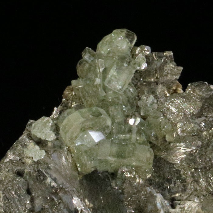 Begleitet wird diese Spezialität von Willemit (grün fluoreszierend in kurzwelligem UV-Licht) und schwarzem Franklinit.