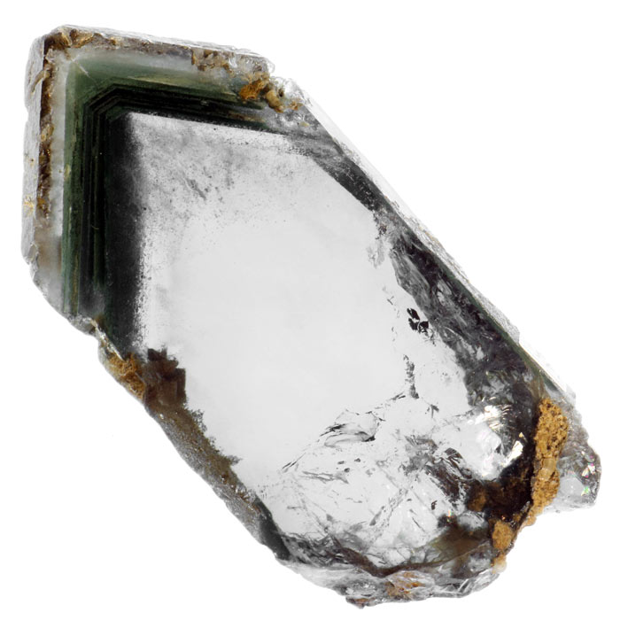Ein Schweizer Rauchquarz, einmal ganz anders: Geschnittene und auf einer Seite polierte Scheibe eines 12.5 cm langen Kristalls, welcher ein tolles, mehrfaches Chlorit-Phantom zeigt. Auch sonst sind diverse innere Details bei diesem Schnitt schön zu erkennen, welche sonst verborgen bleiben.