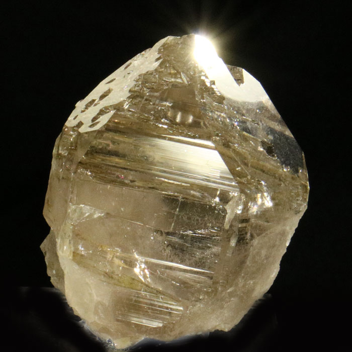 An der Spitze eine Bruchstelle, dies fällt angesichts der vielen "Störungen" im Kristall aber wenig auf.