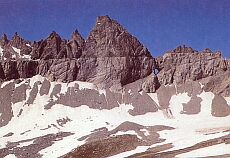 Ein Beispiel für die Bewegungen in den Alpen liefern die Tschingelhörer bei Elm (Kanton Glarus). Die horizontale Trennlinie oberhalb vom Martinsloch bildet die Grenze zwischen zwei unterschiedlichen Gesteins-"Generationen". Im Zuge der Alpenbildung hat sich dort älteres Gestein aus der Permzeit (rund 270 Mio. Jahre alt) über bedeutend jüngere (60-40 Mio Jahre alte) Felsmassen geschoben.