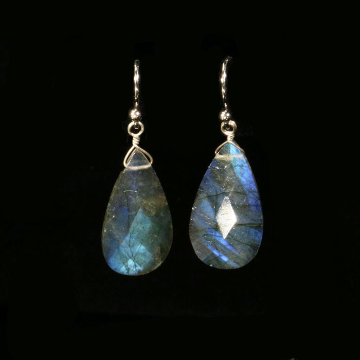 Labradorit, Ohrhänger (facettiert), 3.5 cm (Neuheit)