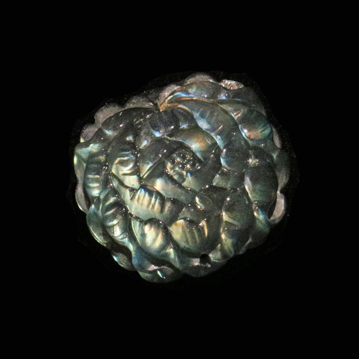 Schön geschliffener "Flaschenkürbis" mit feinen Details, aus Jadeit in zarter lila Farbe, mit einer kleinen grünlichen Zone.
