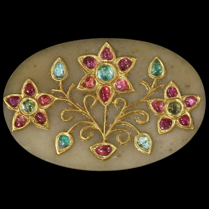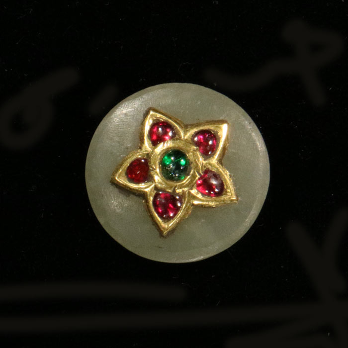 Nephrit-Jade-Amulett (holdili) mit Gold, Rubin und Smaragd