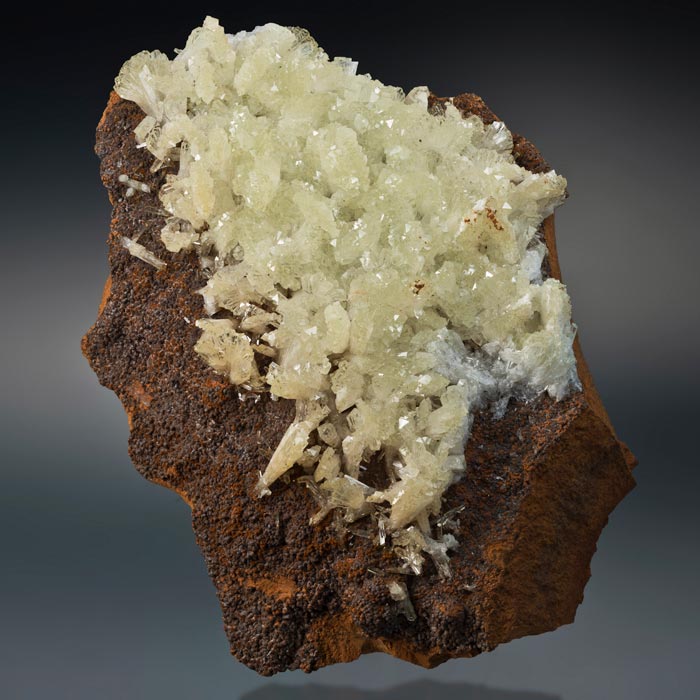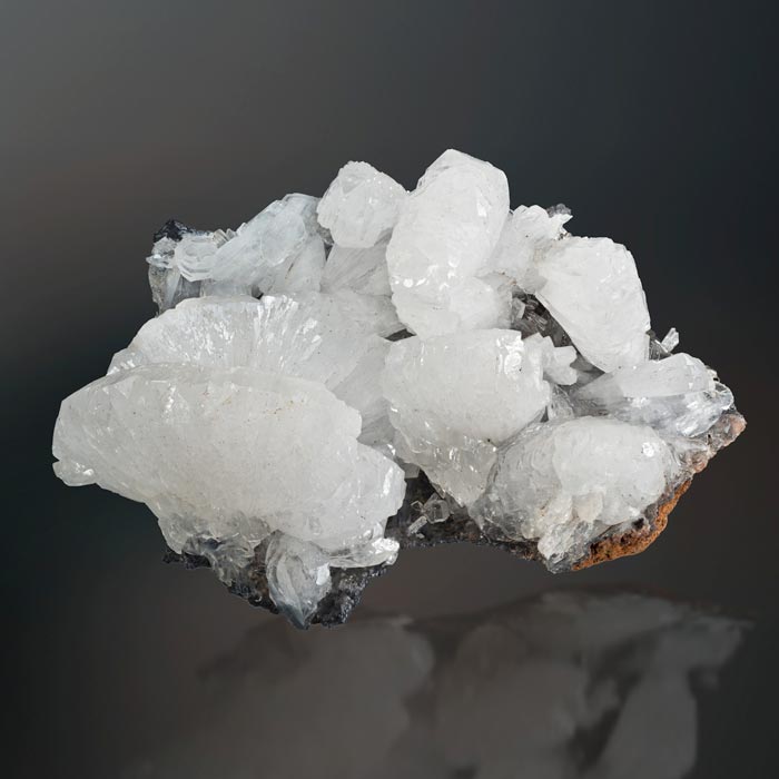 Sehr schönes Exemplar: Glänzende, blättrige Kristallaggregate von schwarzblauem Vivianit, auf Oolith-Matrix. Eine interessante Kombination aus spannenden Gesteinen.