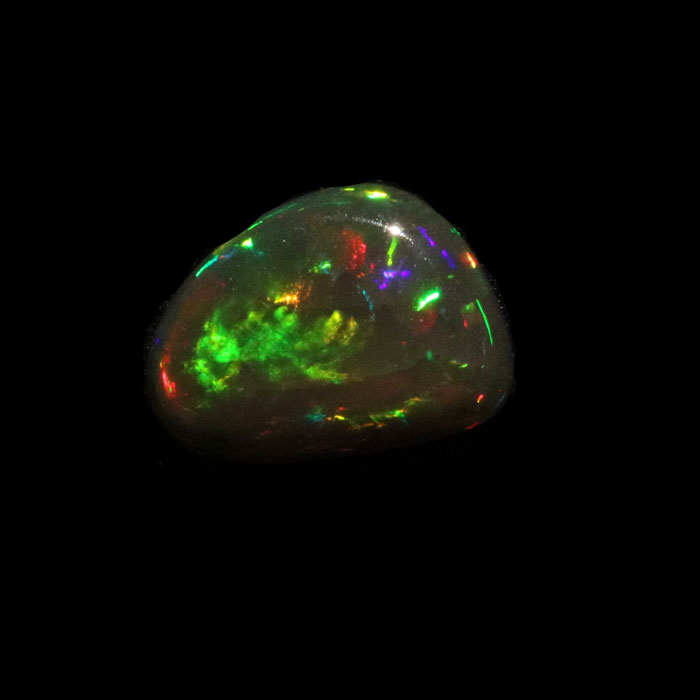Bei dieser dunklen Farbe kann man schon von einem Schwarzen Opal (Black Opal) sprechen, obwohl dieser nicht aus dem berühmten Lightning Ridge in Australien stammt.