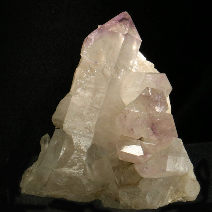 Zepter-Amethyst als handliche Stufe mit mehreren Spitzen, die einen deutlichen, amethystfarbenen Zepteraufwuchs zeigen. Die dominante Spitze steht sehr dekorativ und ist auch unbeschädigt (bis auf eine Druckstelle von weniger als 1 mm an der Rückseite) - überhaupt ist das Stück in sehr gutem Zustand. Einzig eine kleine Spitze am rechten Rand besitzt eine Bruchstelle.