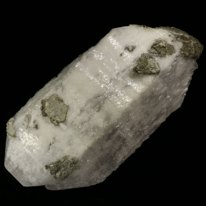 Für die alpine Quarzsammlung, die schon alles hat - ein ganz und gar andersartiger Bergkristall: weisser und grau marmorierter, glänzender Doppelender von unebener Oberfläche, fast komplett undurchsichtig (nur an der Spitze etwas durchsichtig). Einige Resten von Muttergestein haften am Stück. Ohne Bruchstellen.
