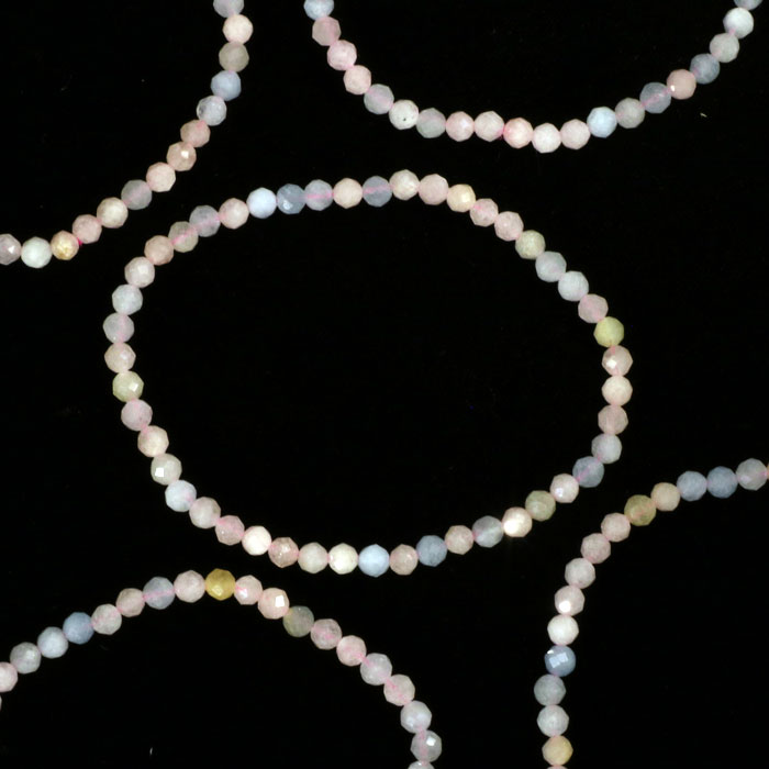 Fein, elegant, sehr schmuck und dennoch nicht teuer: Beryll-Mix (rosa Morganit und hellblauer Aquamarin), als Armband mit fein (4 mm) facettierten Kügelchen.