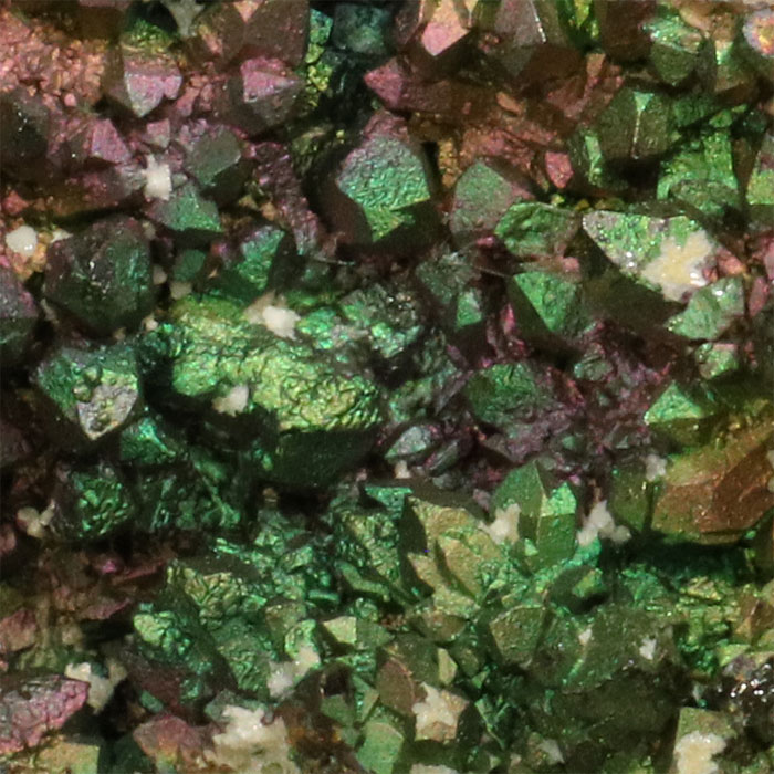 Das Wort "Regenbogen" wird bei so vielen Steinen verwendet - meist, um den Verkauf zu fördern - dass man es langsam Müde ist. Hier ist der Name aber absolut gerechtfertigt: dunkler Goethit, der intensiv regenbogenfarbig irisiert, auf Quarzkristallen in einer Druse. Ein wunderschönes Schaustück, von einem relativ neuen Fundort, der aber bereits aufgehört hat, zu liefern.