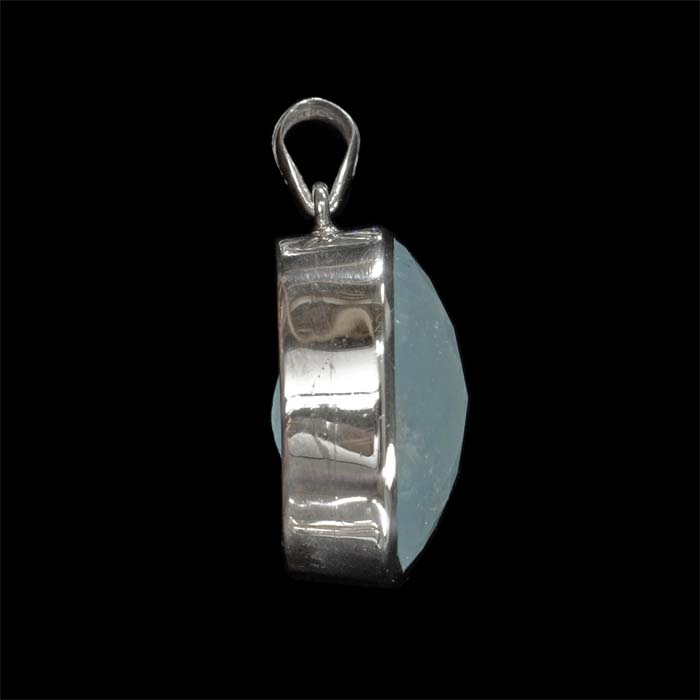 Ein stattlicher, prächtiger Anhänger aus pastellblauem Aquamarin mit faszinierendem 'Innenleben'. Die facettierte Oberfläche unterstreicht den lebhaften Charakter dieses wunderschönen Edelsteins.